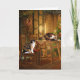 Kaliko zwei oder Schildpatt mit weißen Miezekatzekatzen in einer Weihnachtseinstellung ..... eine, die auf einem Stuhl sitzen und eine auf die Tabellenreinigung selbst als Katzen tun immer ...... Katzenliebhaberfeiertags-Grußkarte