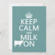 Das Design liest Behalt Calm und Milk On, im Stil des klassischen behalten ruhigen Plakats. Neben den Worten ist eine Silhouette einer Kuh stehend. Das ist ein beliebtes Design für alle, die Milch und Kühe, Bauer und Milchmänner Liebe.
