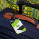 Dieses Volleyball-Thema Gepäckanhänger zeigt das Bild eines realistischen, abstrakt übergroßen Volleyballs mit grünen, schwarz-weißen Panels - personalisieren Sie mit Spielername und Monogramm auf der Vorderseite, Adresse und Telefonnummer auf der Rückseite - von katz_d_zynes