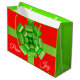 Lime Green Overstoped Bow Geschenktasche Dies hat die hübsche Bogen got. Roter Hintergrund und weiße Schrift. Herrliche Tasche.