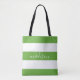 Kalkgrüne und weiße Streifen mit dem Namen Typografy Tote Bag.