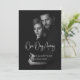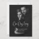 Dieses schlichte Dinner in Schwarz und Weiß mit eleganter Kalligrafie, die "One Day Away" lautet. Sie können es anpassen, indem Sie ein Bild des Paares und seiner Namen für eine personalisierte Einladung hinzufügen. Klicken Sie einfach auf "Dieses Design personalisieren", geben Sie das Foto und die Namen ein, und Zazzle kümmert sich um die Erholung.