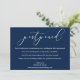 Moderne elegante schöne zarte kalligraphische Skript Hochzeit verschoben New Wedding Date Card Navy Blue