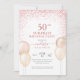 Rosa Kalligraphie Glitzer Balloons Elegant Moderne Überraschung 50. Geburtstag