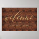 Kalligrafie Rustikales Holz & Gold Begrüßung Poster