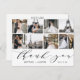 Dieses elegante Dankeschön Postkarten bieten 8 Fotos mit "danke" in Kalligraphie-Skript zusammen mit Pärchennamen und Hochzeitstag. Die Rückseite dieser Postkarte bietet viel Platz, um eine persönliche Dankeschön-Notiz zu schreiben, zusammen mit den Zeilen für die Mailing-Adresse.