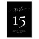 Elegante Kalligrafie Script Herz Schwarz Hochzeit Tischnummern Doppelseitig mit benutzerdefinierten personalisiert. Helfen Sie Ihren Gästen mit diesen schlichten, doppelseitigen Tischnummer-Karten, den Sie ganz einfach finden können. Einfach zu personalisieren, mit Zahlen, paar Namen mit Liebe Herzmotiv und Datum! Enthält ein hübsches Schriftskript für die Kalligrafie "table" auf schwarzem Hintergrund. Ideal für minimalistische, elegante und moderne Hochzeiten.