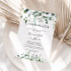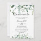 Dieses Kalligraphie-Skript grünes Blattwerk Quinceañera Einladung ist perfekt für eine moderne 15. Geburtstagsparty. Das Design ist mit Aquarellfarben handgezeichnet eleganten botanischen Eukalyptuszweigen und Blätter, die in schönen Bouquets und geometrischen Mustern angeordnet sind.