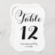 Diese klassische Tischnummer zeigt die Namen der Braut und des Bräutigams in kalligrafisch inspiriert Schrift und einen eleganten Rahmen, der eine Schnittform die.