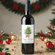Moderne elegante Kalligrafie-Tinte Schrift Happy Holidays Wein Etikett enthält einen Wasserfarben-Kieferbaum in einer Papiertüte mit roter Schleife, goldenen und roten Weihnachtsdekorationen.
