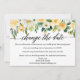Moderne Kalligrafie-Skripte ändern das Datum Hochzeit verschoben neue Hochzeitdatum Karte. Gelbe, weiße Blüten mit gelben Rosen, weiße Blume und Pflanzen.