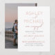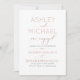 Diese schöne, moderne CALLIGRAPHY TYPOGRAPHY Blush and Rose Gold Engagement Party Invitation bietet eine Rose Gold Textur Kalligraphie Skript und moderne alle Kappe rot und grau Kombination sans serif Schriftart Einladung Design. Die Rückseite der Karte zeigt Ihr Foto zur vertikalen/portraitorientierten Ausrichtung, das auf der Rückseite leicht durch Ihr eigenes ersetzt werden kann. Eine schöne Einladung!