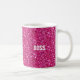 Kalligraphie auf glitzerndem rosa Hintergrund Coffee Tasse. Boss-Text kann personalisiert sein.