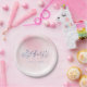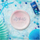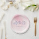 Diese elegante moderne Kalligrafie jubelt Teller mit rustikalem Blumendesign in Marineblau auf sanft blindfarbenem, rosa Aquarell, ideal für moderne rustikale Hochzeiten, Frühjahrshochzeiten im Abend und andere Feierlichkeiten. Sehen Sie sich alle passenden Stücke in der Sammlung unten an.
