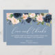Moderne Elegante Schöne Kalligraphie Liebe und danke Hochzeit Vielen Dank Flat Card - Watercolor Dusty Blue Pink Blush Floral mit Rose und Grün