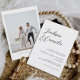 Mit dieser Personalisierten kalligraphischen Schwarz-Weiß-Foto-Einladung zum Hochzeitsfeiern machen Sie einen bleibenden ersten Eindruck. Diese Einladungen für Hochzeiten sind zeitlos und perfekt für die Schwarz-Weiß-Einladungen geeignet. Moderne Einladungen für Hochzeiten und elegante Einladungen für Hochzeiten werden hier kombiniert. Dieses Design eignet sich ideal für Paare, die einfach nur Hochzeitseinladungen oder klassische Hochzeitseinladungen wünschen. Es eignet sich für Hochzeitseinladungen, besondere Hochzeitskarten und elegante Hochzeitseinladungen. Entdecken Sie Ideen für Hochzeitsfeiern, die sich durch diese minimalistische Einladungsoption auszeichnen. Perfekte Einladungskarten für Ihren großen Tag.
