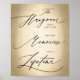 Stilvolles Schwarz-Kalligrafie-Script auf Imitaten Gold beleidigen den Hangover erst am letzten Tag, aber die Erinnerungen Last a Lifetime Wedding Reception Open Bar Sign. Mit Fett*fa*tin entworfen. Einfach mit eigenen Texten, Fotos oder Bildern anpassen. Für individuelle Anfragen wenden Sie sich bitte direkt an fat*fa*tin. Es gelten benutzerdefinierte Gebühren. www.zazzle.com/fat_fa_tin www.zazzle.com/color_therapy www.zazzle.com/fatfatin_blue_knot www.zazzle.com/fatfatin_red_knot www.zazzle.com/fatfatin_mini_me www.zazzle.com/fatfatin_box www.zazzle.com/fatfatin_design www.zazzle.com/fatfatin_ink