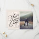 Diese klassische und elegante Foto Save the Date-Karte verfügt über Ihr Foto mit romantischer Kalligraphie-Schrift. Fügen Sie zusätzliche Details zur Rückseite hinzu oder löschen Sie einfach den Beispieltext, um ihn leer behalten.