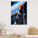 Ein kaltes Bier, das im Weltraum einen Anzug mit Platz im Hintergrund trägt. Das ist eine künstlerische KI.