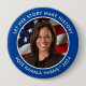Kamala Harris 2024 Historische Präsidentschaftswahl. Collectible Keepake Button-Back-Taste mit individuellem Foto und amerikanischem Flaggenhintergrund. Erstellen Sie Ihre eigene politische Erklärung oder Ihren Slogan für Demokraten, die Kamala Harris für den Präsidenten unterstützen.