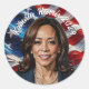 Kamala Harris 2024 und amerikanische Flagge Runder Aufkleber