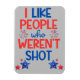Dieser 2024 Kamala Harris Election Magnet ist ein lustiger Schwung von einer der vielen lächerlichen Dinge, die Donald Trump im Laufe der Jahre gesagt hat. In einem Interview, als John McCain als "Kriegsheld" bezeichnet wurde, sagte Trump: "Er war ein Held, weil er gefangen genommen wurde. Ich mag Leute, die nicht gefangen genommen wurden." "Ich mag Leute, die nicht erschossen wurden", war geboren. Das ist ein lustiger und edgischer Magnet, aber trotzdem gepriesen und geeignet für Kinder und Menschen mit einer geringen Toleranz für schlechte Sprache.