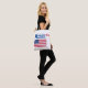 Kamala Harris in Demokratischer Königsblau mit '24 in leuchtendem Rot. Enthält die amerikanische Flagge. Erhältlich in mehr Größen.
