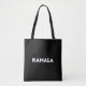 Kamala moderne mutige Typografie minimalistisch schwarzen Tote Tasche. Weißer Text auf schwarzem, solidem, editierbarem Farbhintergrund.