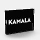 Kamala moderne fett formatierte Typografie minimalistisch schwarzen Acrylkleback Foto Block. Weißer Text auf schwarzem, solidem, editierbarem Farbhintergrund.