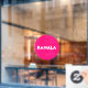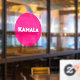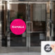Kamala moderne Typografie minimalistisch heiß rosa rund Fenster Klingelzeichen. Weißer, fett formatierter Text auf heißen rosa bearbeitbaren Farbhintergrund.