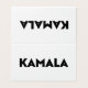 Kamala moderne fett formatierte Typografie minimalistisch schwarz-weiß gefaltete Karte Tischschild. Schwarzer Text auf weißem, solidem, editierbarem Farbhintergrund.