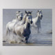 Kamargue-Pferde laufen auf Sumpflandschaft um zu ü Poster