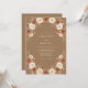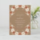 Dieses Design zeigt einen erdigen Kamelhintergrund, der mit einer romantischen Anordnung von Wasserfarbenrosen in cremigem Weiß und warmen Rosttönen geschmückt ist. Zarte Sprenkel von herbstlichem Laub und kleinen weißen Blüten schaffen eine natürliche, bohemische Ästhetik. Ideal für ein rustikales Herbstereignis, das Farbpalette ruft Wärme und charmanten, anspruchsvollen Waldcharme hervor.