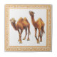 Ein großes schauendes Paar Kamele mit einer dekorativen Grenze herum.