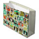 Große, glänzende Geschenktasche mit einem 50er-Bild, auf der Vorder- und Rückseite, von bunten Retro-Kameras auf ecru. Siehe passende Konfetti, Gefälligkeitsbox, Gefälligkeitsmarke, Etikett und Verpackungspapier. Sehen Sie die gesamte Nifty 50er Gift Bag Kollektion in den SONDERTOUCHS| Gastgeschenken