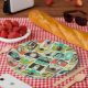 Set von acht 9" Papier Teller mit einem 50er-Bild von bunten Kameras auf ecru. Siehe dazu passender Kolben, Tasse und Untersetzer. Sehen Sie sich die gesamte Sammlung von Nifty 50er Plate im NAHRUNGSMITTEL/BEV an. | Abschnitt Geschirr.
