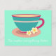 Niedliche Teeküche mit Kamillentee. Teefreunde Thema - Tee macht alles besser. Niedliches Retro-Teedesign auf blauem Hintergrund.