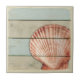 Eine Kamm-Muschel-Muschel auf einem Pastell beunruhigte Hintergrund.