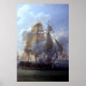 Dies ist eine Reproduktion von Louis Philippe Crepins Meisterwerk, Kampf des Poursuivante von 1819. Dies ist eine Darstellung einer berühmten Seeschlacht zwischen der französischen Fregatte Poursuivante mit dem britischen Schiff Hercules am 28. Juni 1803. Es war eine monumentale Schlacht der napoleonischen Kriege. Die Schlacht fand in den Westindischen Inseln statt und danach wurde der Poursuivante in Baltimore, Maryland, neu aufgebaut. Das Original ist im Musee national de la Marine. Der Künstler war siebenundvierzig, als er dieses Meisterwerk vollendete, und starb 1851.