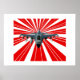 Kämpfer Jet auf einem dynamischen roten geometrischen Hintergrund.