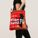 Das auffallend helle Rot- und Orangendesign mit einem Kung-Fu-Mädchen in der Silhouette darstellend einen fliegenden Kick und bricht in der Mitte die Worte "kung fu". Der weiße Text impliziert eine alte chinesische Maxime der Kampfkünste: "Das Leben ist Kung Fu - Kung Fu ist das Leben". Das Wraparound-Design zeichnet sich auch durch einen coolen abstrakten Hintergrund in Rot und Schwarz aus, und das Hauptdesign-Element ist in Gold gerahmt.