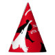 Kampfsport Geburtstagsparty Hut mit Karate-Posen. Spaß beim Design für Kinder. Personalisieren Sie Ihre Daten mit Namen, Datum oder Slogan. Rot heiß aufgehende Sonne mit coolen Silhouetten von Kämpfern, die eine kick Pose. Auch für andere asiatische Kampfsportarten wie Ju Jitsu, Taekwondo, Kung Fu, Judo, aikido, Kickboxing, Jiu Jitsu, Muay Thai etc. geeignet.
