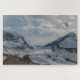 Set in der Nähe des Columbia Icefield in den kanadischen Rockies, dieses Panorama zeigt die ruhige Schönheit der großen Eisfelder gegen schneebedeckte Berge. Die eingefrorene Weite spiegelt die Grandeur der Natur in dieser faszinierenden Winterlandschaft wider.