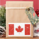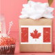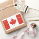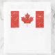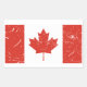 Das ist ein rot-weißer Aufkleber, der mit der kanadischen Flagge verziert ist.