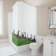 Herrliche Kanada-Gans-Vögel auf einer digitalen Kunst des grasartigen Hügels von der Fotografie ist auf diesem Duschvorhang.