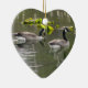 Zwei Kanada-Gänse schwimmen würdevoll auf dem ruhigen Wasser von Scudder Teich in Bellingham, Washington.