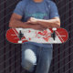 Kanada Manga Animemädchen gekleidet in der Flagge Skateboard