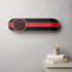 Ein kalligraphisches, rotes Ahornblatt-Design mit Konturen aus Zwischenstrichen ist Set auf einem goldgelben, roten Streifen vor einem schwarzen Hintergrund. Es wird mit Kanada seit 1867 besetzt | Depuis 1867. Eine vollständig bearbeitbare Vorlage.