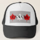Zeigen Sie Ihren kanadischen Geist mit diesen rot-weißen Ahornblättern auf einem grauen Banner. Das Land "Kanada" hat es formuliert. Passen Sie Ihre Wünsche an.