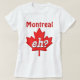 Helle rote Ahornblatt mit fett weißem Text, der sagt Montreal eh? Ändern und anpassen Sie den Namen der Stadt, wenn Sie möchten.